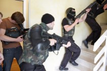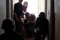 judith shu ritter und fitz van thom schauen owi mahn gebannt über den kameramannbuckel.„zugriff!“ für den film „die küche“ wurde ein ganzer hoteltrakt abgesperrt.caparol spectrum / werbung / r, p: fitz van thom / D2005Illusionsbau: Trick-Kanone fürs Legoland Billund®. Parkchef Claus Pedersen: „This trick works verry nice!“visit the kozcenko bothers!owi mahn- regisseur, filmemacher, spieleerfinder. der hammer!