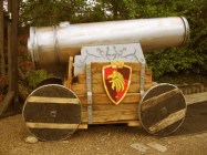 In diese Kanone passt ein Erwachsener, der durch das Trickgeheimnis an jedem beliebigen Ort auftauchen kann- mit etwas Pyrotechnik entsteht der Eindruck, er wäre dorthin "geschossen" worden… Die Kanone wurde für die "Castle Show" im Legoland Billund gebaut.